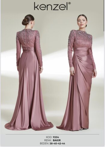 Kenzel Omzu Taş Detaylı Abiye Elbise-9204