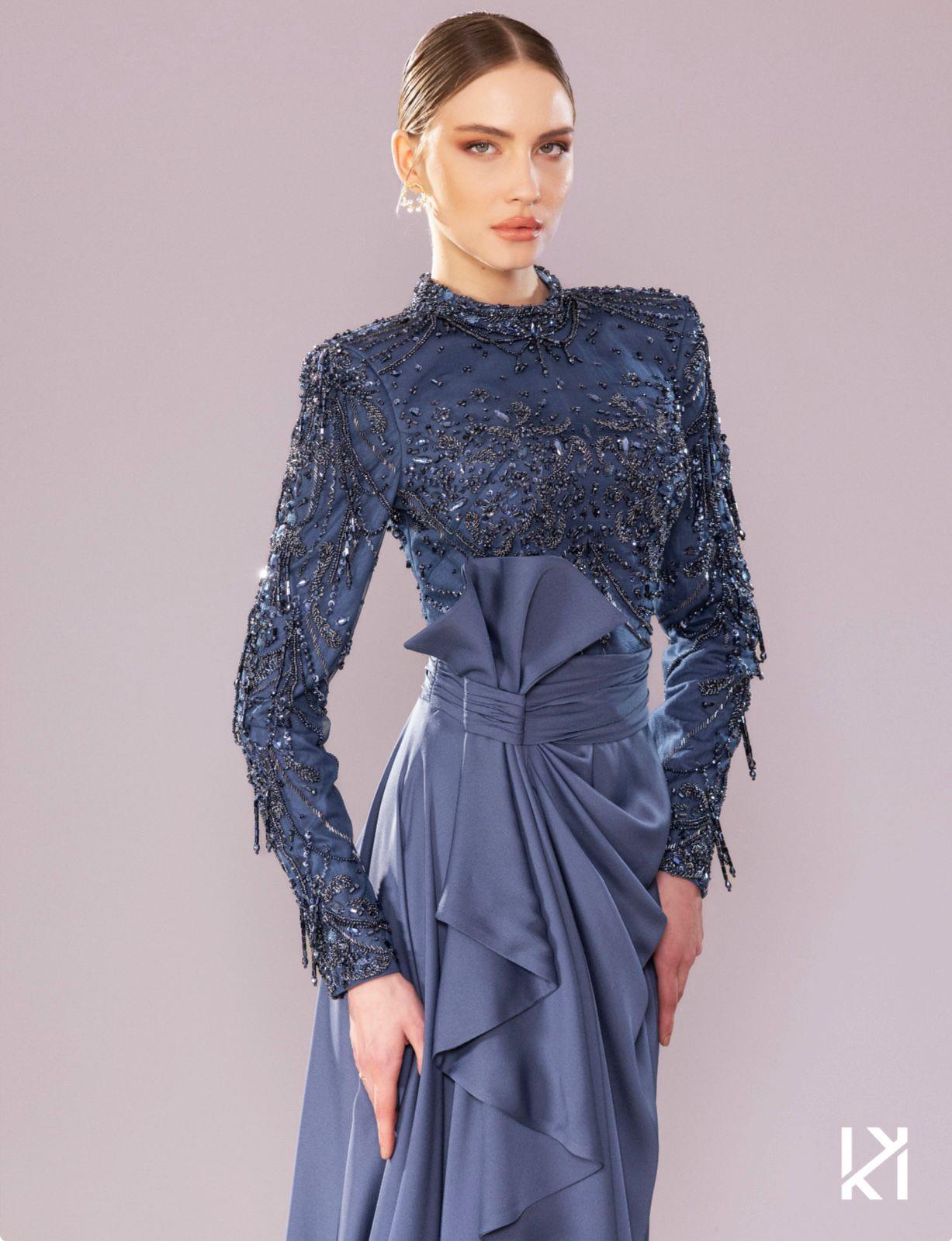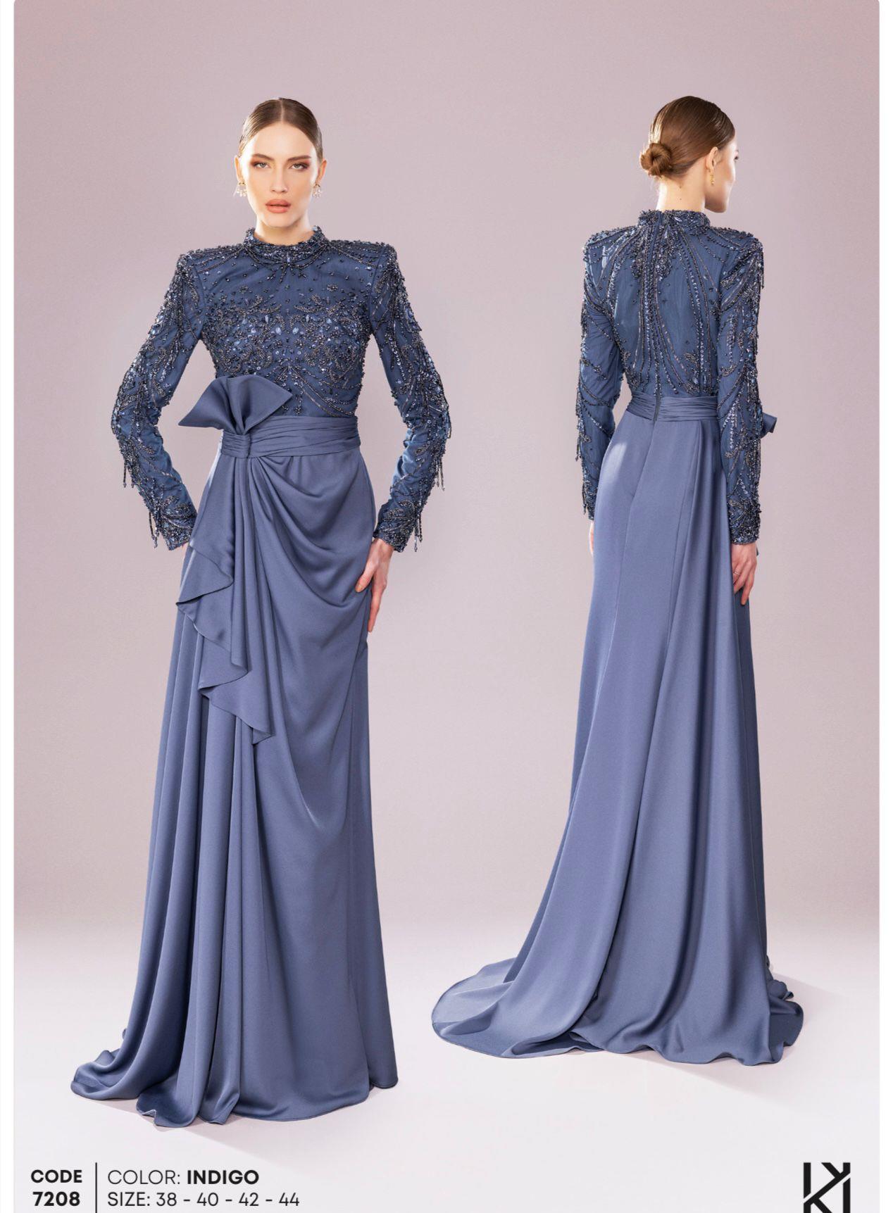 Kenzel Üst Beden Tamamı Taş Detaylı Abiye Elbise-7208