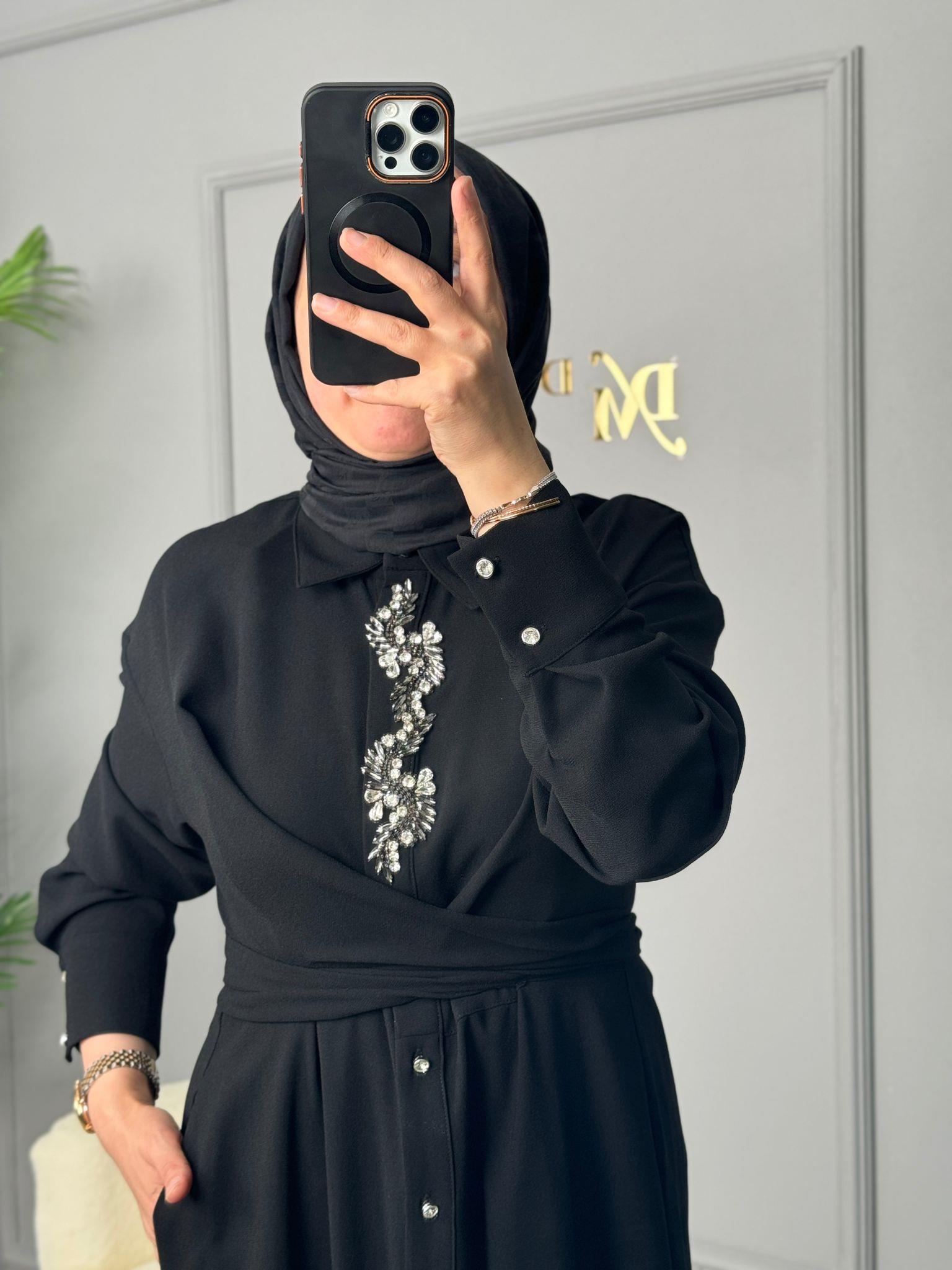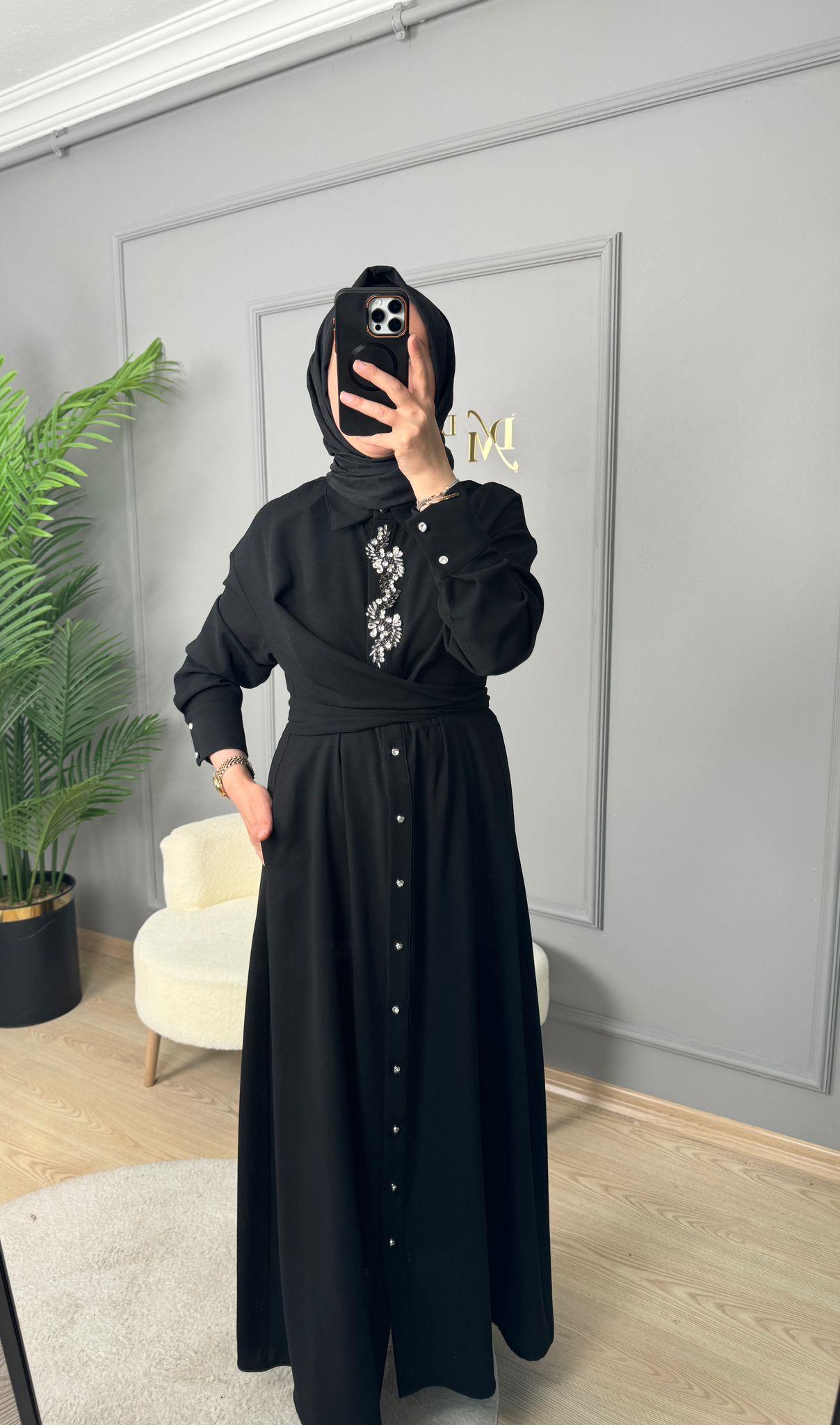 My 312 Bağlamalı Taşlı Abiye Elbise-5604