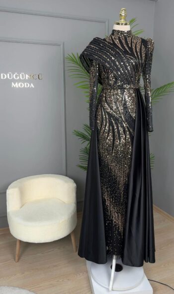 Suenna Tamamı Payet Detaylı Abiye Elbise-221